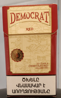 сигареты Democrat, в данном случае, выполненные в форм-факторе компакт и имеющие вишневый ароматизатор, в связи с чем носящих дополнительную приписку - red. Оформление пачки очень богатое и красочное, учитывая что эти сигареты являются детищем фабрики LEX (Армения), можно сказать,что LEX очень постарались и даже превзошли самих себя. К качеству изготовления как пачки, так и сигарет так же нареканий нет - всё более чем достойно. Открывая пачку можно "услышать" очень приятный запах ароматизатора, который действительно очень схож с вишней и да, аромат не просто копирует арабские Oris или тот же, для многих являющийся, эталоном Chapman, а имеет свой уникальный и запоминающийся аромат. При курении, аромат немного трансформируется и насыщается, и вместе с подслащенным фильтром, оснащённым по модному - колодцем ещё больше даёт приятных вишневых оттенков. Democrat red в формате компакт курится легко и непринуждённо, но табачной крепости в этих сигаретах очень мало, во всяком случае для меня- заявленные производителем ТТХ по смоле/никотину в 7/0.6 не чувствуются и явно завышены. Вкус табака практически полностью вытеснен вишневым ароматизатором, но при этом ароматизатор подобран настолько удачно, что, думаю многими любителями вишневых "аромок" принят что называется "на ура". После курения в воздухе остаётся плавно стихающая приятная сладковато-вишнёвая рум-нота. В целом - Democrat red в формате компакт - это,на мой взгляд, очень удачные вишнёвые "аромки" с единственным большим минусом - низкой крепостью.Отзыв